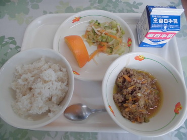 4月28日 1 清掃活動・・・生徒会役員、中央委員、整備委員の計19人が学校周辺の清掃・ごみ拾いを行いました。 2 授業の様子 1年生 国語の授業です。図書室で行いました。国語辞典・漢和辞典を使った授業です。 2年生 体育の授業です。班別に体作り運動のプログラムを作成しています。 3 今日の給食 肉そぼろごはん、中華サラダ、オレンジ、牛乳(820kcal) 最終更新日:2023年4月28日