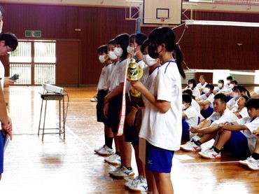 6月26日 1 校内球技大会・・・生徒会主催によるバレーボール大会を体育館で行いました。男女別、1~3年までの縦割りグループとし、熱戦が繰り広げられました。 2 今日の給食 ごはん、鯖の味噌煮、ごま和え、冬瓜のすまし汁、牛乳(805kcal) 最終更新日:2023年6月26日