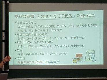 2 2年生食育出前授業・・・昨日、町給食センター栄養士の井手上さんに講師として来ていただき、災害時の食事に関する授業を実施しました。備蓄食料など、自宅の防災対策を見直すきっかけになればと思います。